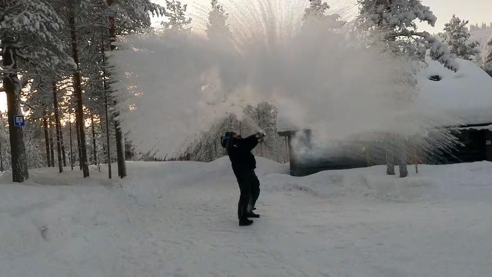 Οι πολικές θερμοκρασίες ρεκόρ που καταγράφηκαν στη Φινλανδία αυτήν την εβδομάδα ενέπνευσαν έναν τουρίστα, ο οποίος είχε επισκεφθεί την Αρκτική, προκειμένου να δοκιμάσει να κάνει ένα κόλπο που εδώ και πολύ καιρό του κινούσε την περιέργεια: να ρίξει βραστό νερό στον αέρα έξω, όταν έκανε πάρα πολύ κρύο και να το δει να μετατρέπεται αμέσως σε ένα σύννεφο παγωμένης σκόνης.