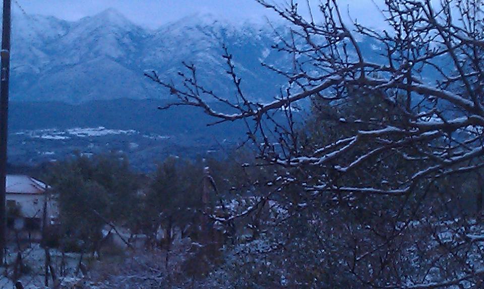 Πυκνή χιονόπτωση έπεφτε όλο το βράδυ στην Κατούνα, με το χιόνι να έχει στρωθεί παντού…