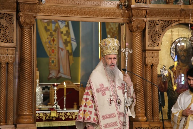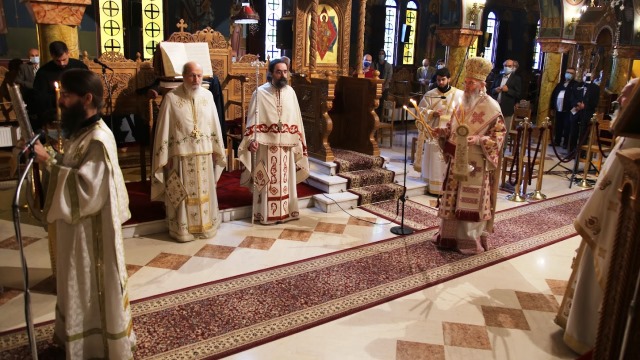 Τήν Κυριακή τελέσθηκε Ἀρχιερατική θεία Λειτουργία, μέ τήν συμμετοχή τῶν ἀπαραιτήτων Ἱερέων καί Διακόνων, καί πιστῶν μέ τήν προβλεπόμενη ἀναλογία μέσα στόν Ἱερό Ναό.