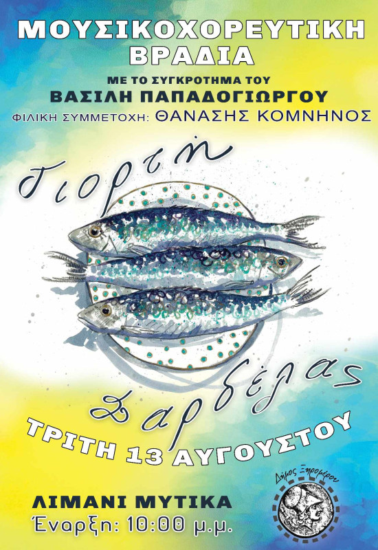 Τρίτη και 13 Αυγούστου στις 10:00 μ.μ. θα διεξαχθεί η Γιορτή της Σαρδέλας στο Λιμάνι του Μύτικα.