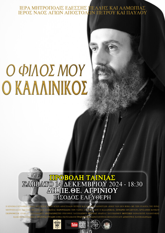 5. Σάββατο ώρα 6.30 Προβολή Ταινίας με το βίο του Αγίου Καλλινίκου στο ΔΗ.ΠΕ.ΘΕ. Αγρινίου στο συντριβάνι.