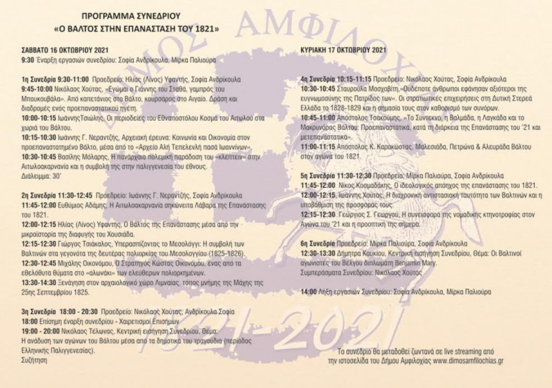Δήμος Αμφιλοχίας: Συνέδριο 16 και 17 Οκτωβρίου με θέμα: «Ο Βάλτος στην Επανάσταση του 1821»