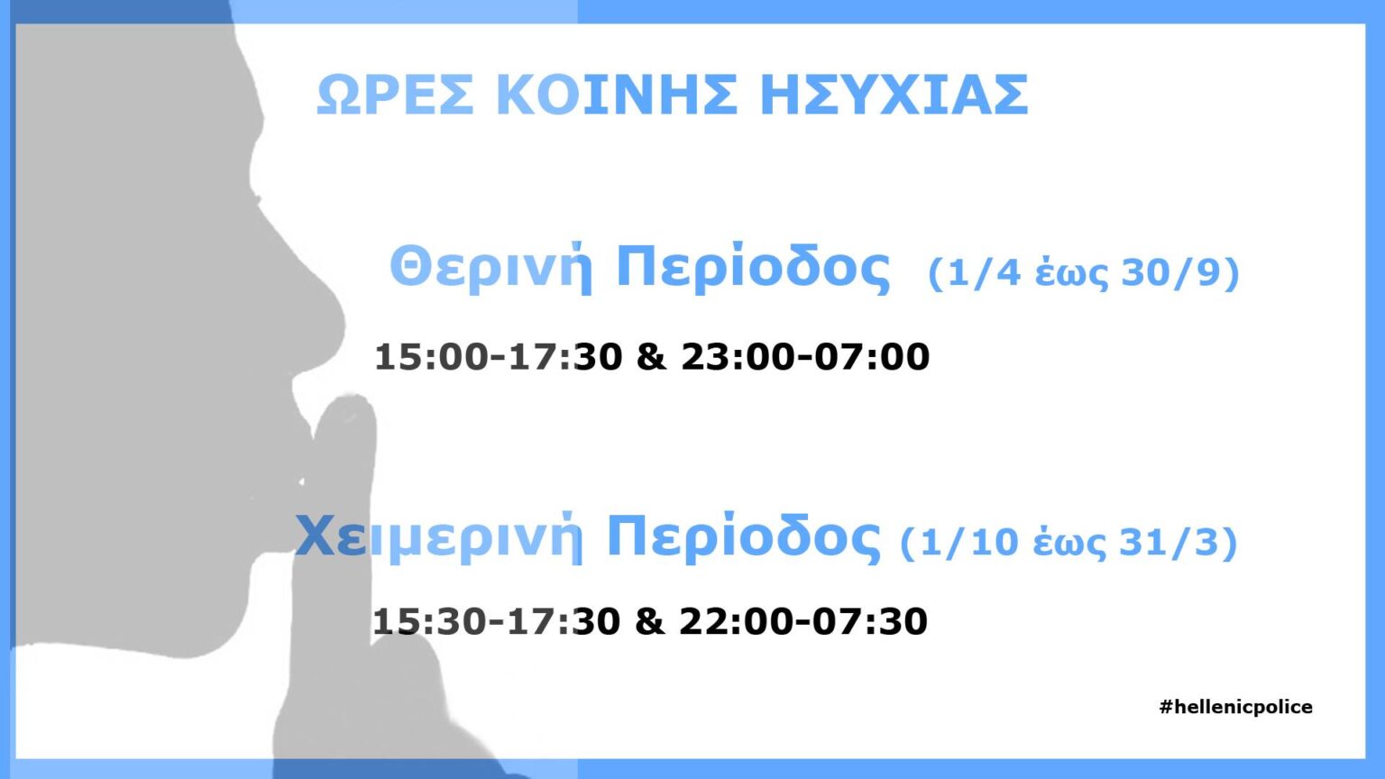 Επομένως, οι ώρες κοινής ησυχίας διαμορφώνονται ως εξής:
