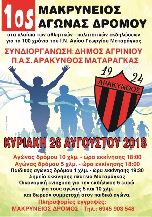 1ος Μακρύνειος αγώνας δρόμου – Συνδιοργάνωση Δήμου Αγρινίου και ΠΑΣ Αράκυνθος Ματαράγκας