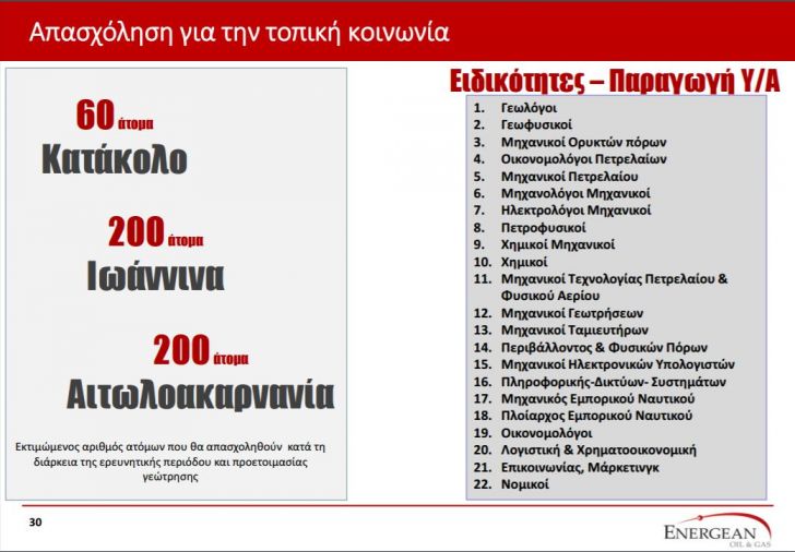 Περισσότερες από 200 θέσεις εργασίας σε κάθε μία από τις περιοχές των Ιωαννίνων/ Θεσπρωτίας και της Αιτωλοακαρνανίας πρόκειται να δημιουργηθούν με άξονα τις γεωφυσικές σεισμικές έρευνες που προγραμματίζει να διενεργήσει η Energean Oil & Gas στην προσπάθεια εντοπισμού κοιτασμάτων υδρογονανθράκων.