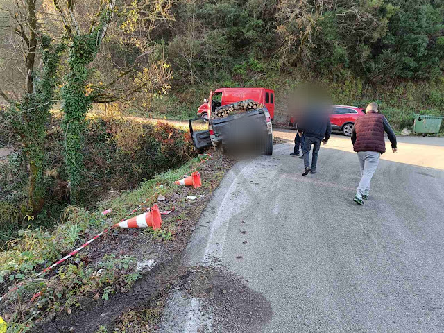 Όπως φαίνεται στις φωτογραφίες του potamoulanews απ’ όπου και το θέμα, ο οδηγός του αγροτικού που ήταν φορτωμένο με ξύλα έχασε τον έλεγχο του οχήματος και λίγο έλειψε να πέσει από ύψος πέντε μέτρων, με τραγικές συνέπειες.