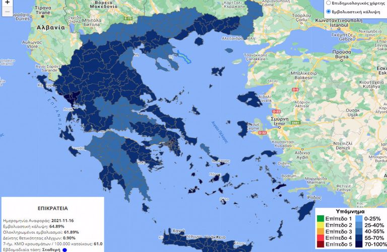 Στην Αιτωλοακαρνανία το 54% του γενικού πληθυσμού είναι πλήρως εμβολιασμένοι, ενώ η ηλικιακή κατηγορία των 60 ετών και άνω έχει εμβολιαστεί σε ποσοστό 66%.