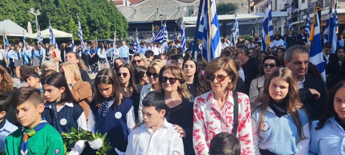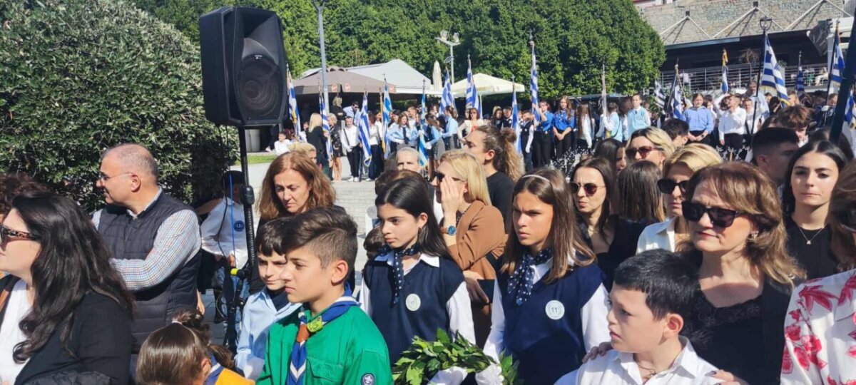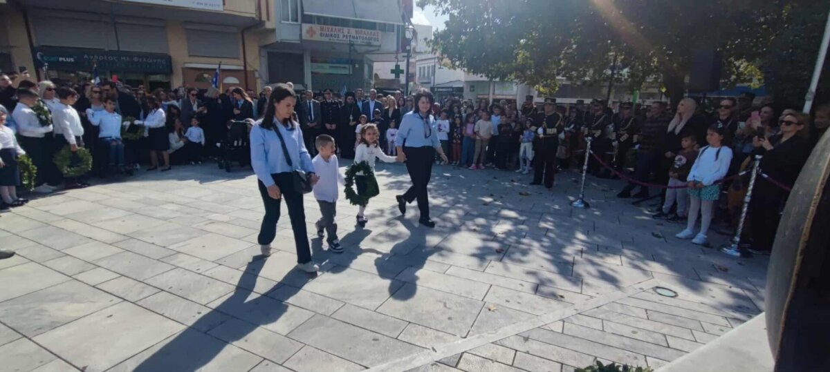Ακολούθησε κατάθεση στεφάνων από Μαθητές όλων των βαθμίδων, Φοιτητές των Πανεπιστημιακών Τμημάτων της πόλης, Αυτοδιοικητικούς, και Εκπροσώπους Φορέων και Συλλόγων στο Μνημείο Πεσόντων.