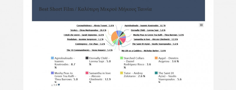 Το Φεστιβάλ επικεντρώθηκε στους κινηματογραφικούς μονόλογους και τις μικρού μήκους ταινίες και στο πρόγραμμά του υπάρξε και διαγωνιστικό τμήμα, με έξι βραβεία από την κριτική επιτροπή και τρία βραβεία κοινού. (Δείτε εδώ).