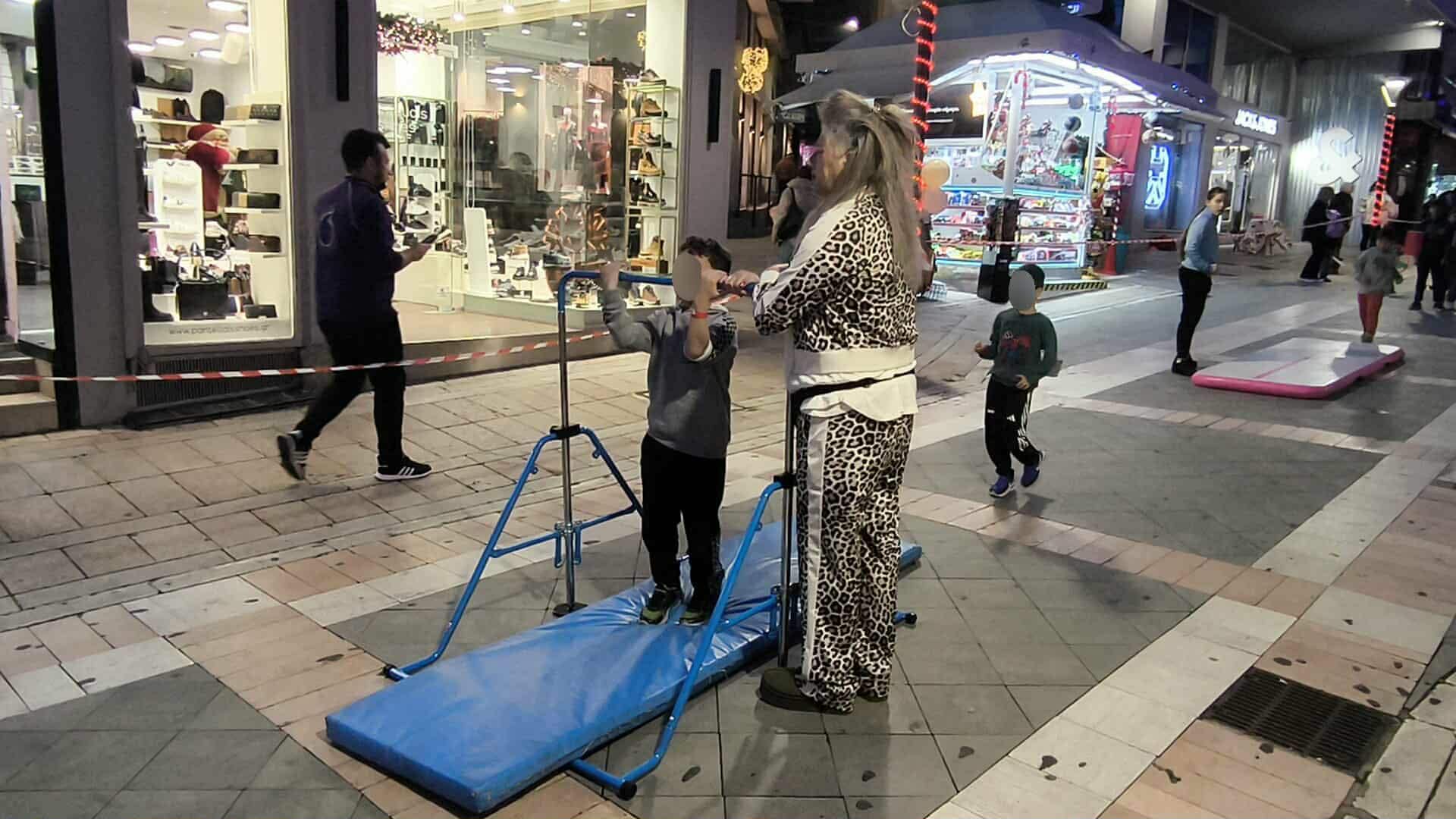 Η Οδός Παπαστράτου μετατράπηκε σε μια μεγάλη χριστουγεννιάτικη αθλητική πίστα, όπου τα παιδιά ήρθαν σε επαφή με γνωστά, αλλά και λιγότερο διαδεδομένα αθλήματα, μέσα από παιχνίδι και δημιουργική κίνηση, σκορπίζοντας ζωντάνια και ενέργεια σε κάθε τους βήμα.