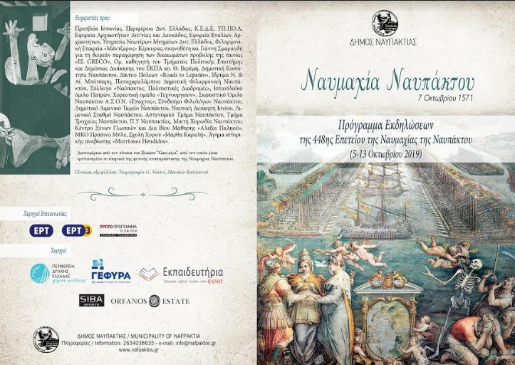Ο Δήμος Ναυπακτίας διοργανώνει την 448η επέτειο από τη Ναυμαχία της Ναυπάκτου με αρκετές και ξεχωριστού ενδιαφέροντος εκδηλώσεις (συναυλία, δράσεις για παιδιά, προβολή ταινίας, κλπ.). H 70μελής διάσημη μπάντα της Φιλαρμονικής Εταιρείας «Μάντζαρος» θα εμφανιστεί συναυλιακά στο ενετικό λιμάνι της Ναυπάκτου στις 5 Οκτωβρίου (σε περίπτωση δυσμενών καιρικών συνθηκών η συναυλία θα πραγματοποιηθεί στην Παπαχαραλάμπειο Αίθουσα Ναυπάκτου) . Ο γνωστός ιστορικός Θάνος Βερέμης σε συνεργασία με τον Σύνδεσμο Φιλολόγων Ναυπακτίας θα παρουσιάσουν τον αντίκτυπο της Ναυμαχίας σε Ανατολή και Δύση, στις 9 Οκτωβρίου στο αρχοντικό Μπότσαρη.
