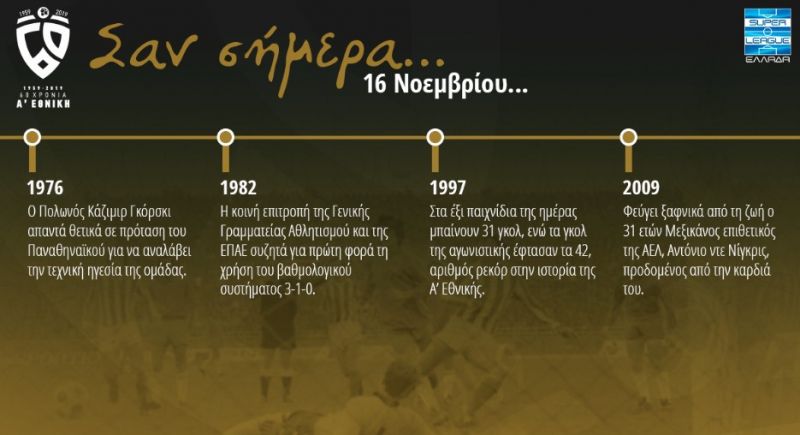 60 χρόνια Α’ Εθνική: Σαν σήμερα (Σάββατο, 16 Νοεμβρίου)