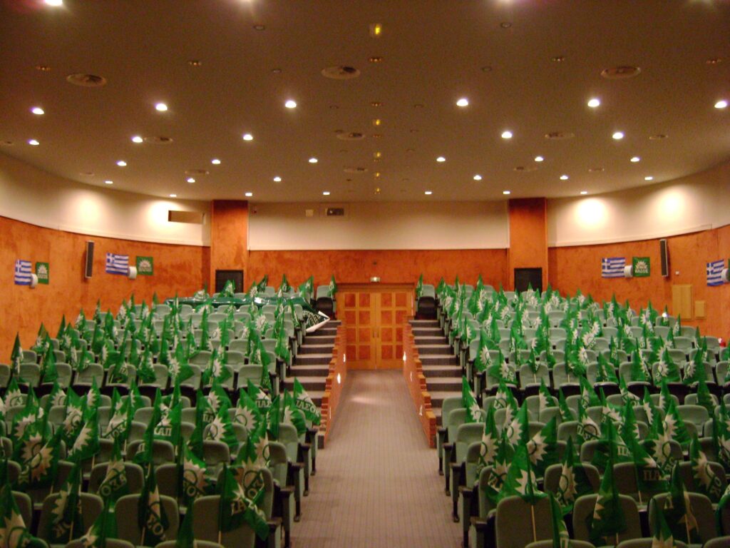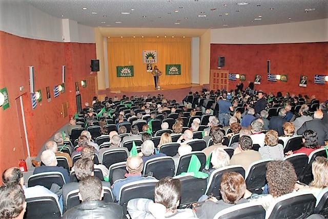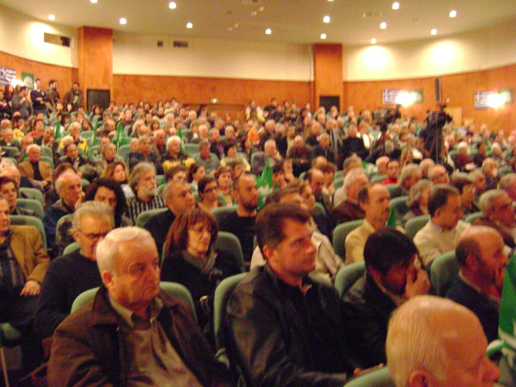 Η αίθουσα ήταν κατάμεστη καθώς υπήρχαν και αρκετοί όρθιοι, ενώ η νεολαία έδωσε τον παλμό με συνθήματα και ρυθμικά χειροκροτήματα σε όλη τη διάρκεια της ομιλίας.