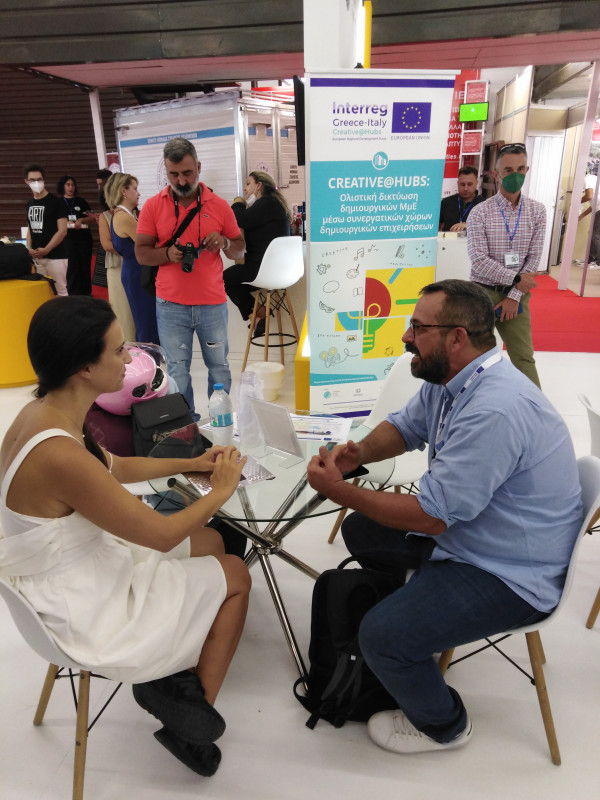 Παράλληλα, επαγγελματίες του δημιουργικού κλάδου από την Περιφέρεια Δυτικής Ελλάδας, είχαν την ευκαιρία δικτύωσης με B2Bσυναντήσεις που πραγματοποιήθηκαν στο περίπτερο, με την επιμέλεια του Επιμελητηρίου Αχαΐας. Στο έργο Creative@Hubs – Interreg V-A Greece-Italy συμμετέχουν τέσσερις εταίροι: Περιφέρεια Δυτικής Ελλάδας – Περιφερειακό Ταμείο Ανάπτυξης (επικεφαλής), Περιφέρεια Ηπείρου, Περιφέρεια Ιονίων Νήσων και Περιφέρεια Απουλίας.