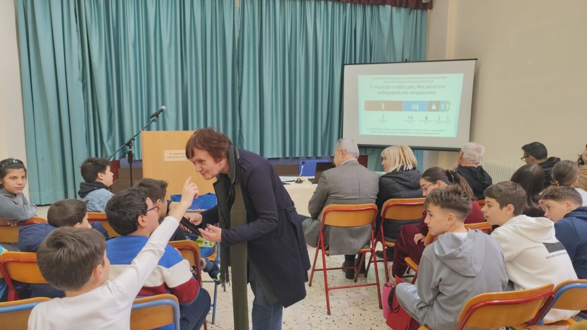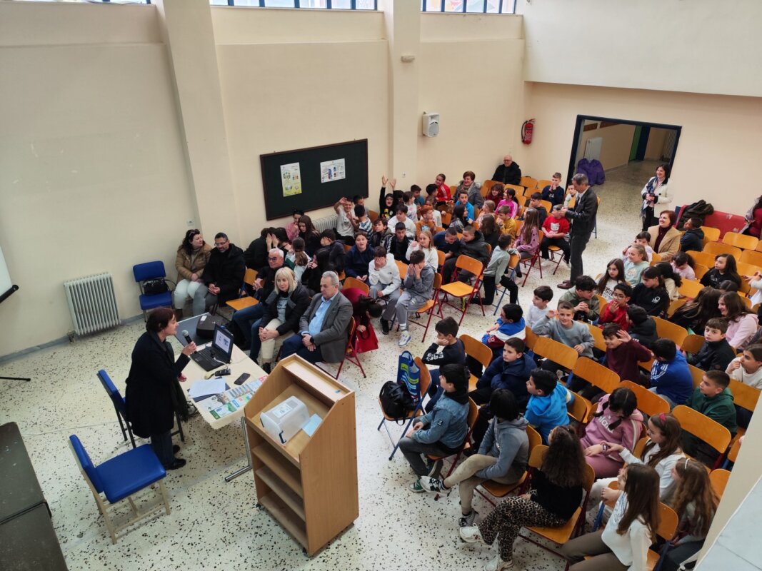 Στο 8ο Δημοτικό Σχολείο Αγρινίου το πρωί της Τετάρτης, 18 Μαρτίου 2026 πραγματοποιήθηκε εκδήλωση από τη Διεύθυνση Καθαριότητας και Ανακύκλωσης για την Παγκόσμια Ημέρα Ανακύκλωσης.
