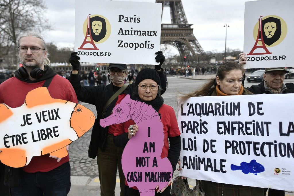 Τα μέλη της φιλοζωικής οργάνωσης Paris Animaux Zoopolis, που συγκεντρώθηκαν σήμερα μπροστά από το ενυδρείο, κατήγγειλαν το «Ασυνήθιστο Ρεβεγιόν» που οργανώνει την Κυριακή, παραμονή Πρωτοχρονιάς, το ενυδρείο.
