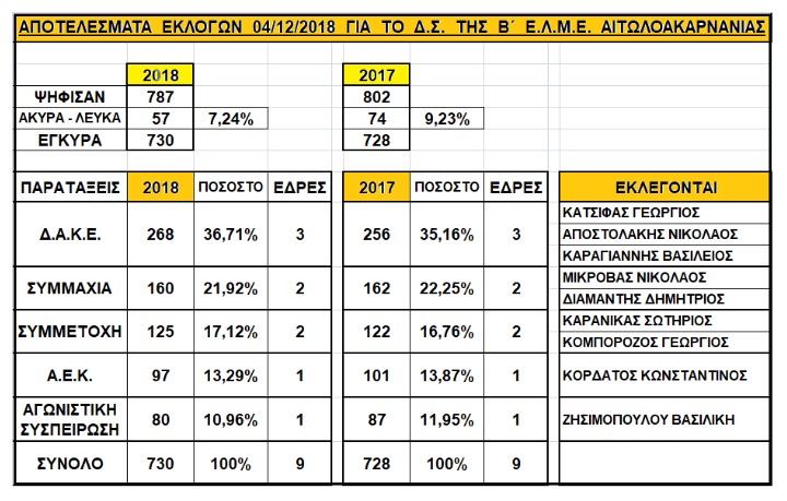 Χαιρετίζουμε τις συναδέλφισσες και τους συναδέλφους που με τη ψήφο τους στηρίζουν σταθερά την ΑΕΚ, στέλνοντάς την ξανά στο νέο Δ.Σ. του σωματείου μας. Θεωρούμε ότι με τη ψήφο τους επιβεβαίωσαν τη μέχρι τώρα δράση μας κόντρα σε κομματικές και άλλες θεσμικές σκοπιμότητες. Αναδεικνύεται πως μια σοβαρή και συνεπής στάση υπεράσπισης των συλλογικών εργασιακών δικαιωμάτων μας βρίσκει ανταπόκριση σε ένα σεβαστό αριθμό συναδέλφων 13,29% του κλάδου. Βέβαια θα περιμέναμε μεγαλύτερη αποδοχή σε σχέση με την προσφορά μας στην ΕΛΜΕ την προηγούμενη περίοδο, αλλά αυτό δεν μειώνει την ουσιαστική αποδοχή μας και σε αυτούς τους συναδέλφους που δεν μας ψηφίζουν για διάφορους λόγους.