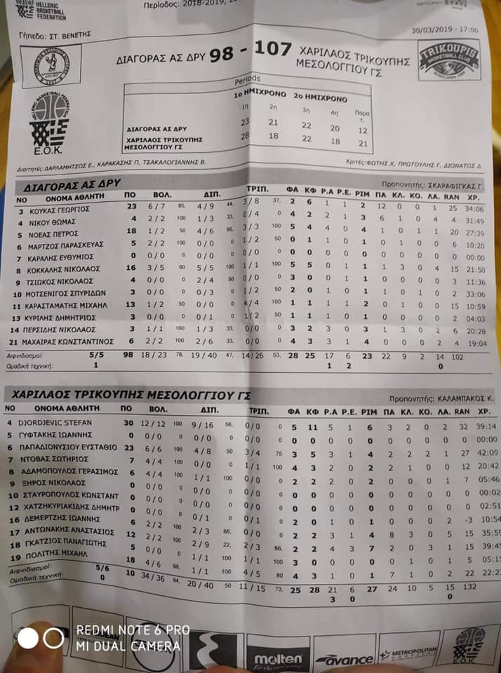 Τεράστια εκτός έδρας νίκη για την ομάδα του Χαρίλαου Τρικούπη κόντρα στο Διαγόρα Δρυοπιδέων με σκορ 98-107 στη παράταση καλύπτοντας και τη διαφορά του πρώτου αγώνα.