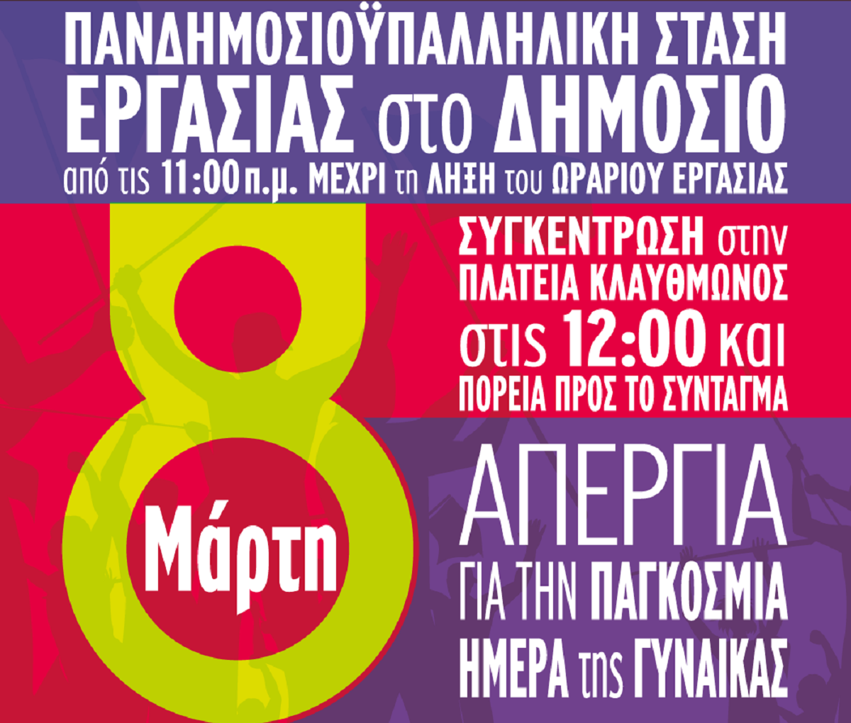 Συμμετέχουμε στην απεργία για την παγκόσμια μέρα της γυναίκας στις 8 Μάρτη 2024 – Εκφράζουμε την αντίθεσή μας στο αντισυνταγματικό νομοσχέδιο για την ίδρυση ιδιωτικών πανεπιστημίων