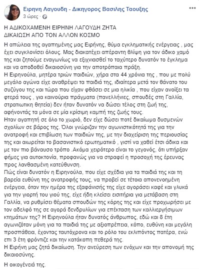 Η αδικοχαμένη Ειρήνη Λαγούδη ζητά δικαίωση από τον άλλον κόσμο (Φωτό)