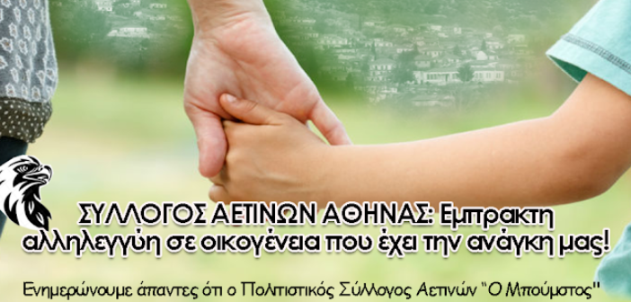 Ενημερώνουμε άπαντες ότι ο Πολιτιστικός Σύλλογος Αετινών «Ο Μπούμστος» με την υποστήριξη των εργαζομένων- συναδέλφων- συνανθρώπων μας, της εταιρείας Bic violex, και η πρωτοβουλία η οποία ανέλαβε για την υποστήριξη σε οικογένεια η οποία τύχαινε σπουδαίας ανάγκης έλαβε μεγάλης ανταπόκρισης και τους ευχαριστούμε θερμά!
