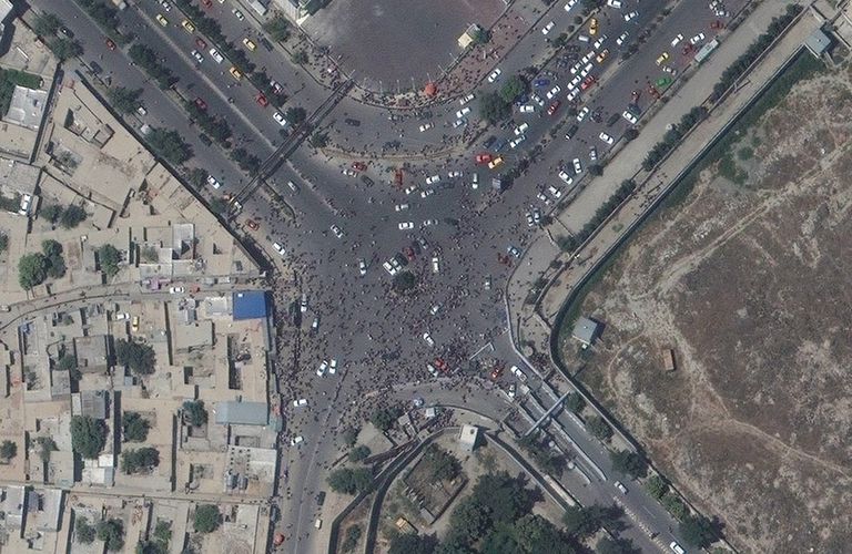 Tις χαοτικές στιγμές που επικράτησαν στο αεροδρόμιο της Καμπούλ αναδεικνύουν υψηλής ανάλυσης δορυφορικές φωτογραφίες.
