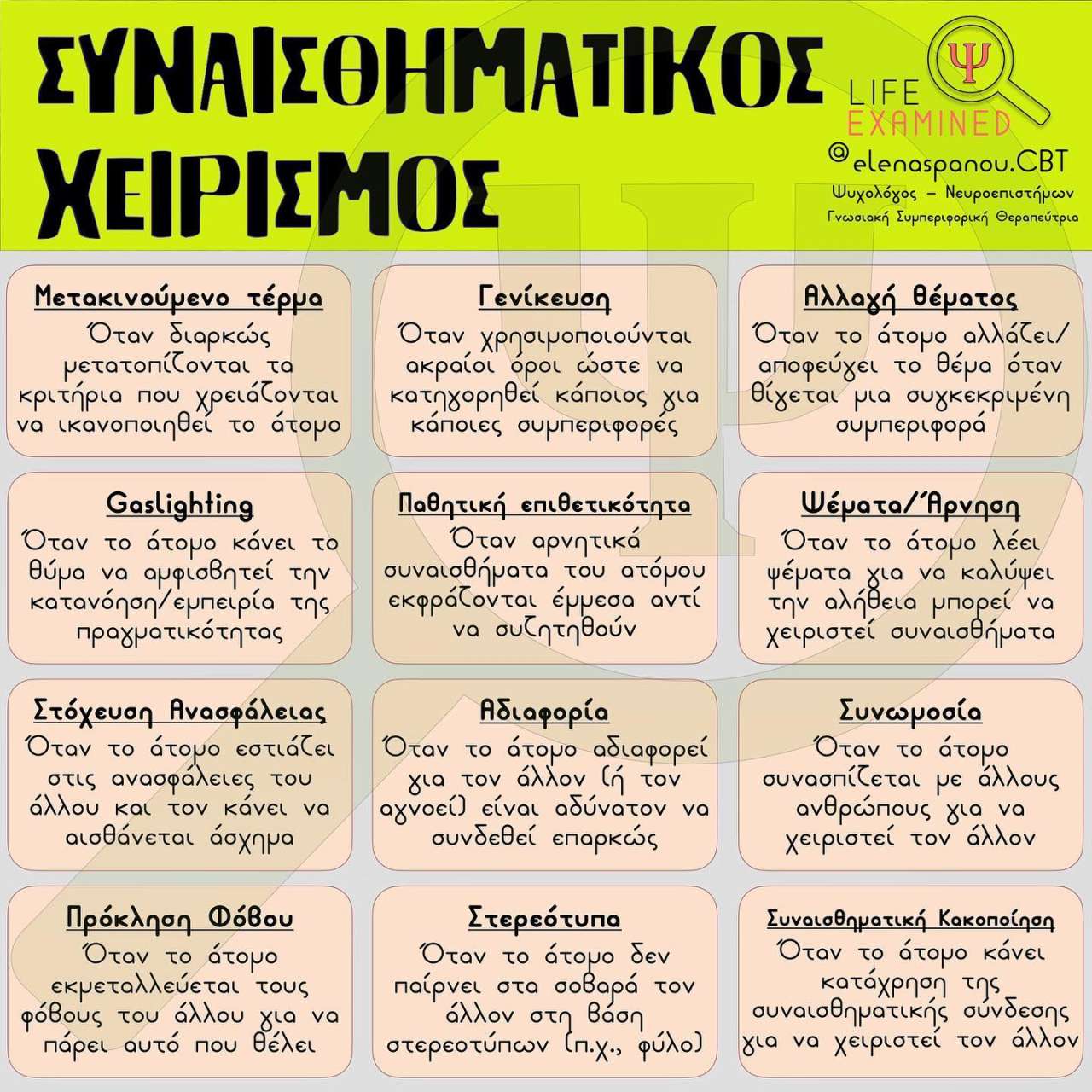 Ας δούμε όμως πρώτα ποια είναι επιγραμματικά τα 12 σημάδια συναισθηματικού χειρισμού, στο πινακάκι που ετοίμασε η ίδια: