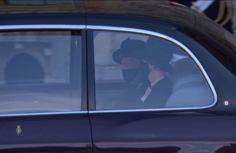 Η βασίλισσα, εμφανώς συντετριμμένη, αναχώρησε από την Είσοδο του Μονάρχη με το αυτοκίνητο που είναι γνωστό ως State Bentley και έφτασε στο πίσω μέρος της πομπής.