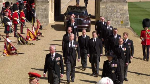 Το παρών στην κηδεία δίνουν τα τέσσερα παιδιά της βασίλισσας Ελισάβετ και του πρίγκιπα Φιλίππου, όπως και τα οχτώ εγγόνια τους, αλλά κανένα από τα δισέγγονα.