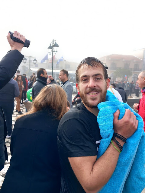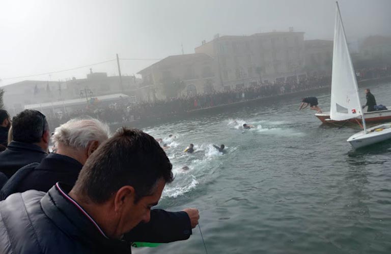 Ο Βασίλης Μπαΐλης του Αθανασίου έπιασε πρώτος το σταυρό στο λιμάνι της Βόνιτσας στον καθιερωμένο αγιασμό των υδάτων, που έγινε φέτος με ωραίο καιρό και ομίχλη, σύμφωνα με το έθιμο προσφέρει ευλογία και δύναμη για την νέα χρονιά.