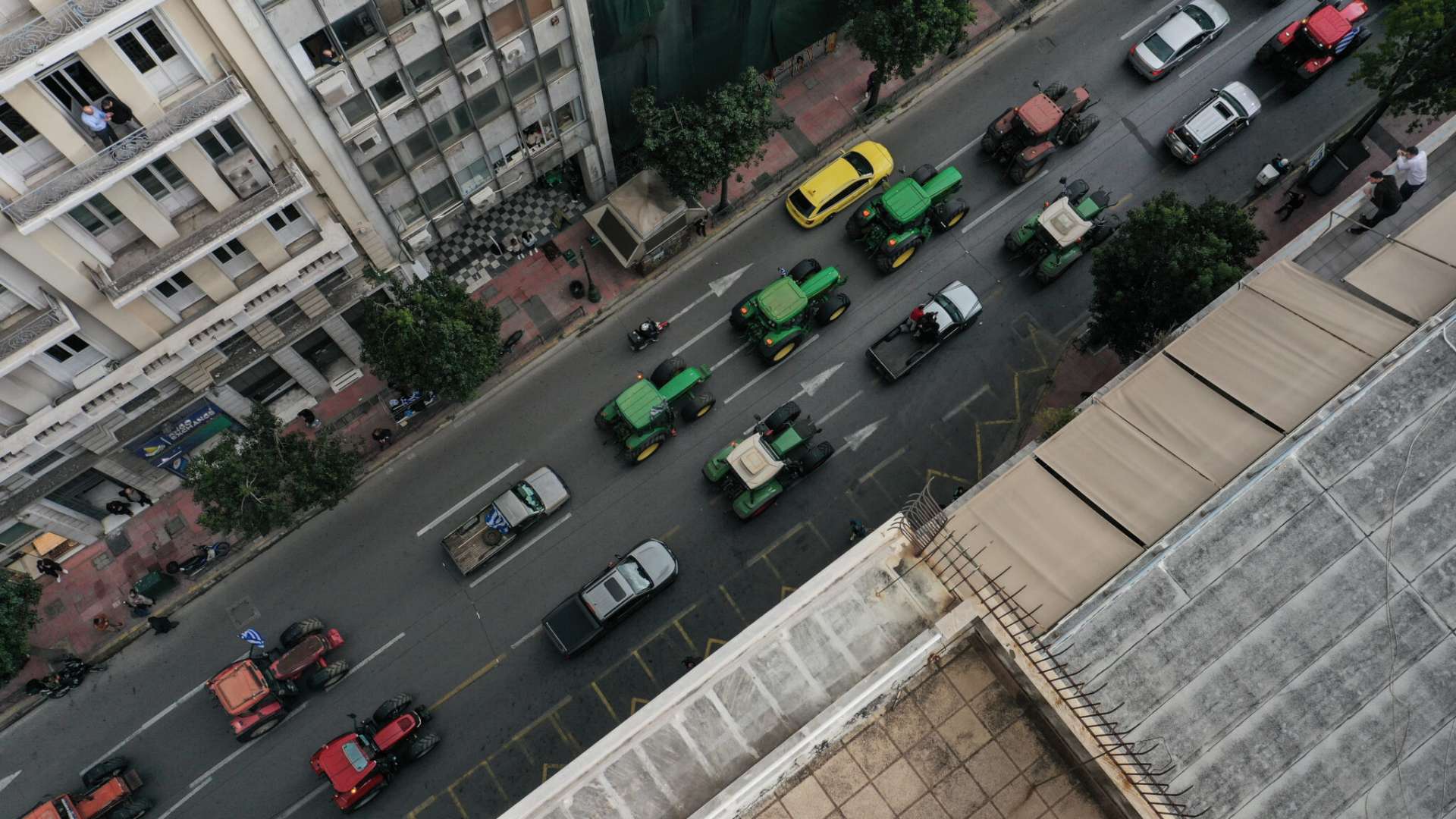 Οι αγρότες μπαίνουν με τα τρακτέρ τους στη Λεωφόρο Αθηνών κορνάροντας, με τους περαστικούς να αποθανατίζουν την πρωτόγνωρη για την Αθήνα εικόνα με τα κινητά τους. Ο κύριος όγκος των τρακτέρ φτάνει στην πλατεία Καραϊσκάκη και πλέον απέχει μερικές εκατοντάδες μέτρα μακριά από την Ομόνοια.