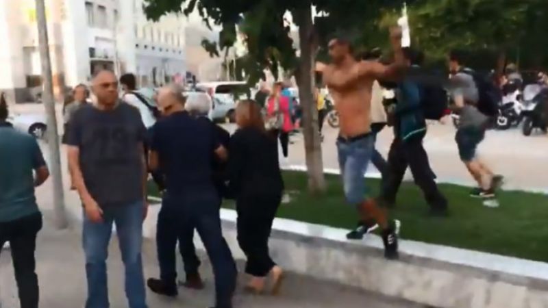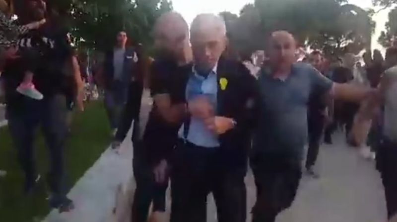 Τελικά οι συνοδοί του δημάρχου τον απομάκρυναν από τον χώρο για να τον προστατεύσουν από το μαινόμενο πλήθος.