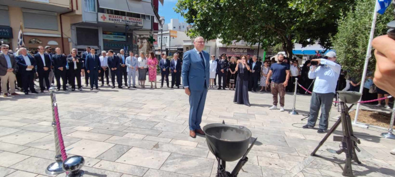 Ακολούθησε η Επιμνημόσυνη Δέηση και η Κατάθεση των Στεφάνων στο Μνημείο των Πεσόντων στην Πλατεία Μαρίας Δημάδη