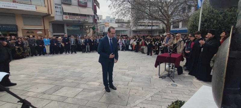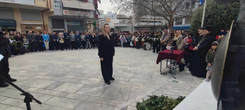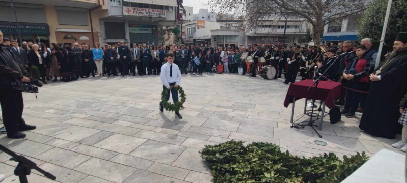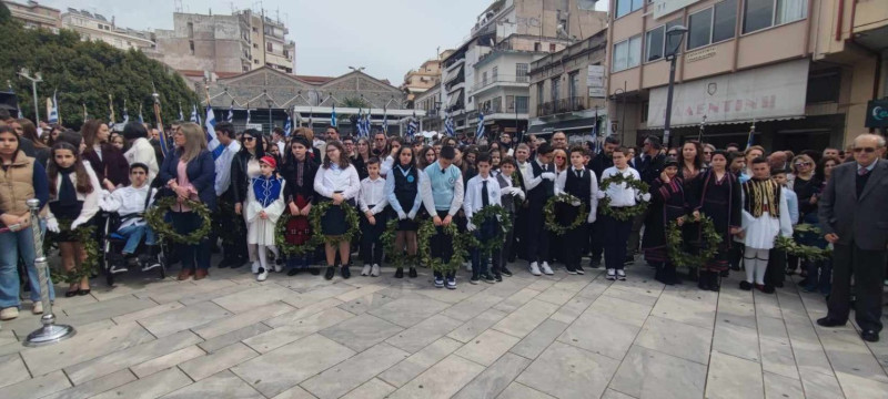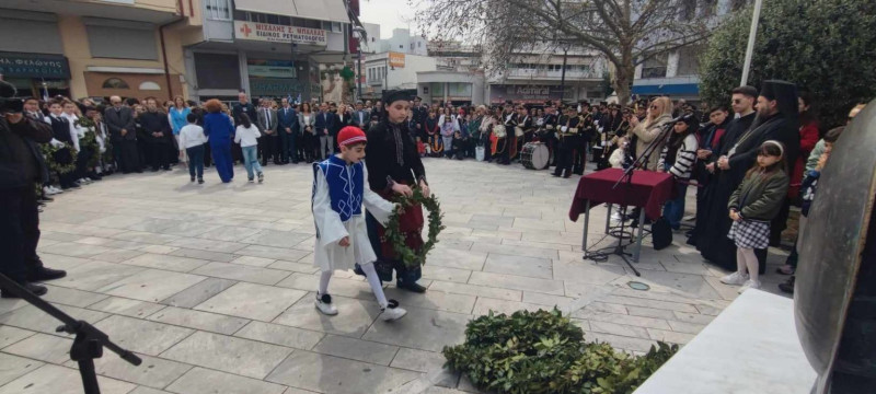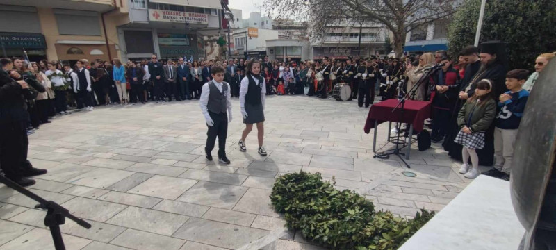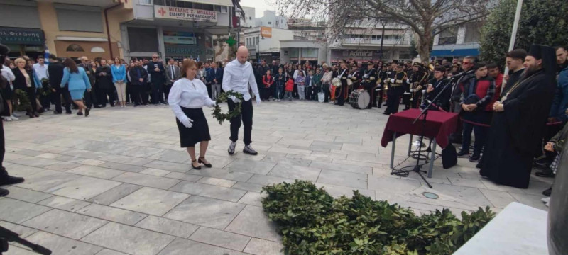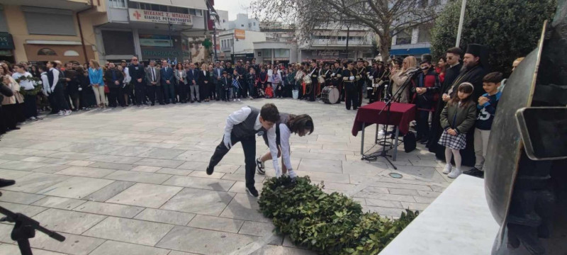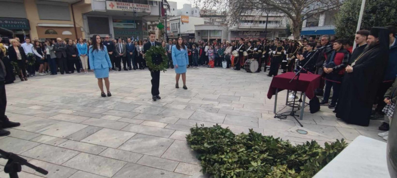 Νωρίτερα, πραγματοποιήθηκε κατάθεση στεφάνου στο μνημείο του ένδοξου Ήρωα Ανδρέα Τσίγκα, από μαθητές του 1ου Δημοτικού, όπως επίσης και κατάθεση στεφάνου στο μνημείο του Μακεδονομάχου Νικολάου Παναγιώτου, από μαθητές του 3ου Λυκείου.