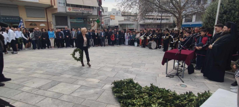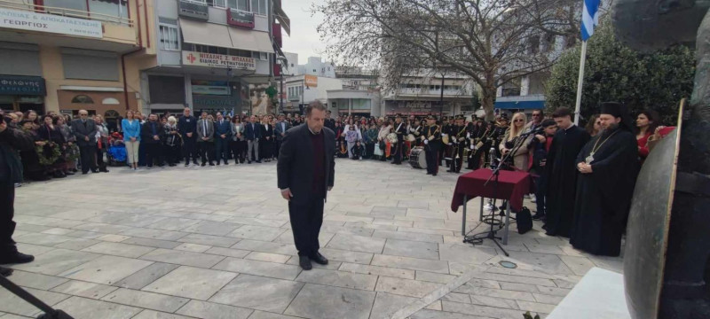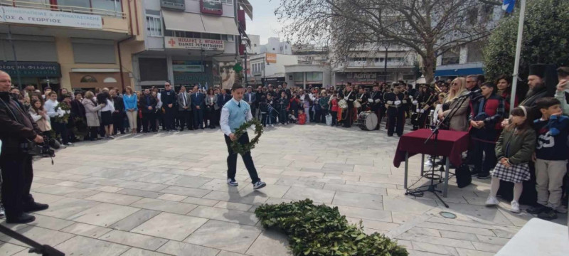 Επιμνημόσυνη δέηση και κατάθεση στεφάνων πραγματοποιήθηκε στο μνημείο πεσόντων στην Πλατεία Δημάδη, στο Αγρίνιο, ενόψει της Επετείου της 25ης Μαρτίου