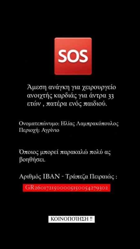 Αγρίνιο: 33χρονος πατέρας ενός παιδιού χρειάζεται τη βοήθειά μας για χειρουργείο ανοικτής καρδιάς