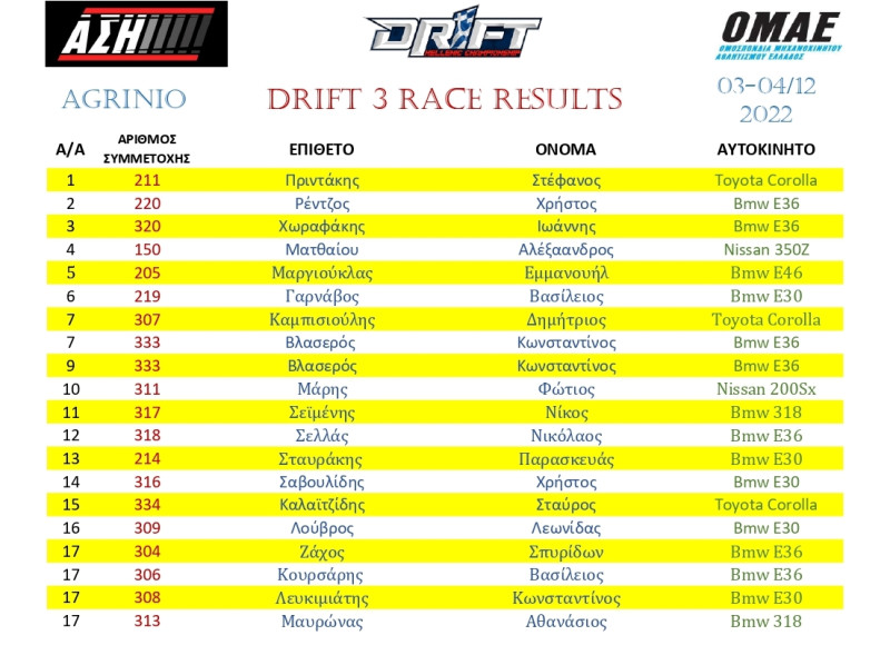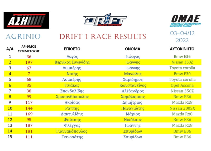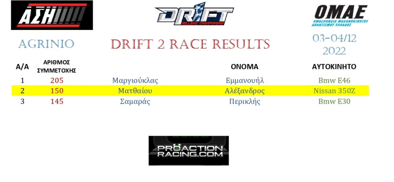 Το σαββατοκύριακο 3 και 4 Δεκεμβρίου, ο ΑΣΗ υπό την αιγίδα της ΟΜΑΕ και με την βοήθεια του δήμου Αγρινίου, διοργάνωσε τον τελευταίο γύρο του Πανελληνίου πρωταθλήματος Drift στην πίστα αγώνων «Agrinio raceway», ενώ ο συγχωριανός μας Νίκος Δ. Φαναριώτης ήταν σε έναν ακόμη αγώνα, δόκιμος Τεχνικός Έφορος, με αρμοδιότητες τον έλεγχο των οχημάτων και την τήρηση των κανονισμών ασφαλείας.