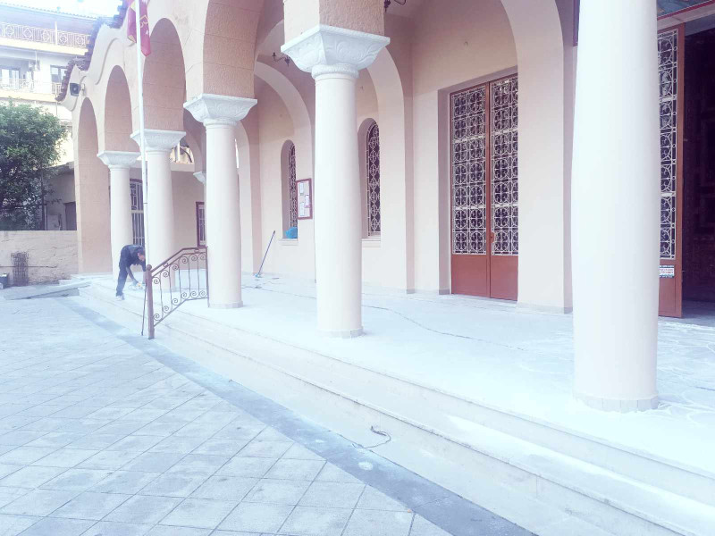 Σε λίγες ημέρες εορτάζει ο Πολιούχος της πόλης, έτσι ξεκίνησαν σιγά σιγά οι προετοιμασίες με μια μικρή κηπουρική ανάπλαση και γυάλισμα των εξωτερικών δαπέδων γύρω από το Ιερό Ναό.