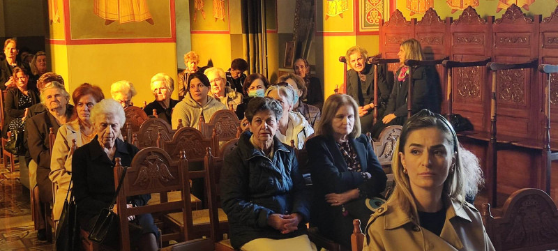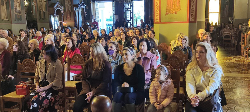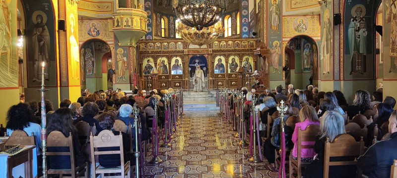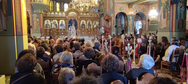 Το πρωί τελέστηκε ο όρθρος και η Θεία Λειτουργία προεξάρχοντος του πρωτοπρεσβύτερου Χρήστου Μήτσιου στο παρεκκλήσι του Αγίου Νεκταρίου που βρίσκεται στον Ι.Ν. Αγίου Χριστοφόρου Ο θεολόγος, συγγραφέας και εκπαιδευτικός ανέλαβε να κηρύξει το θείο λόγο.