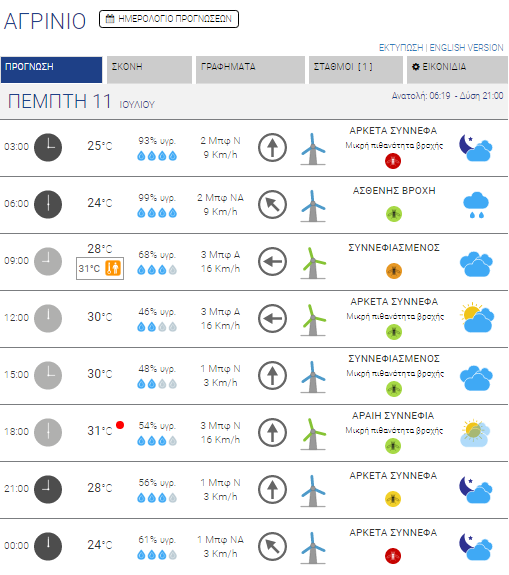 Τοπικά ισχυρές βροχές και καταιγίδες, στα νησιά του Βόρειου και Βορειοανατολικού Αιγαίου, στη Χαλκιδική, στις Σποράδες, στην Εύβοια και σε παράκτια κυρίως τμήματα της ανατολικής και βόρειας χώρας, περιμένουμε την Πέμπτη 11 Ιουλίου 2019.