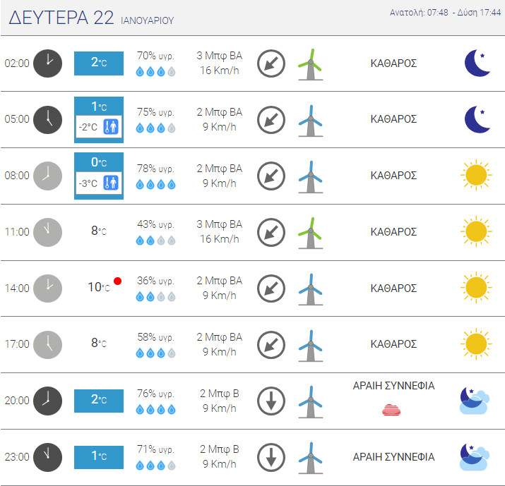 Τη Δευτέρα, 22 Ιανουαρίου 2024 αναμένονται βροχοπτώσεις στο Νότιο Αιγαίο. Χαμηλές θερμοκρασίες. Θυελλώδεις άνεμοι στο Αιγαίο με σταδιακή εξασθένηση.