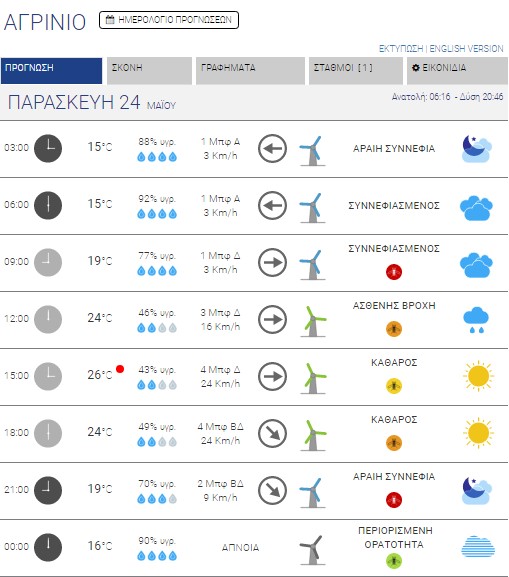 Την Παρασκευή 24 Μαΐου 2019 στα δυτικά, κεντρικά και βόρεια ηπειρωτικά και το Βόρειο Αιγαίο αναμένονται νεφώσεις που κατά περιόδους θα είναι πυκνές και θα σημειωθούν βροχές και καταιγίδες.
