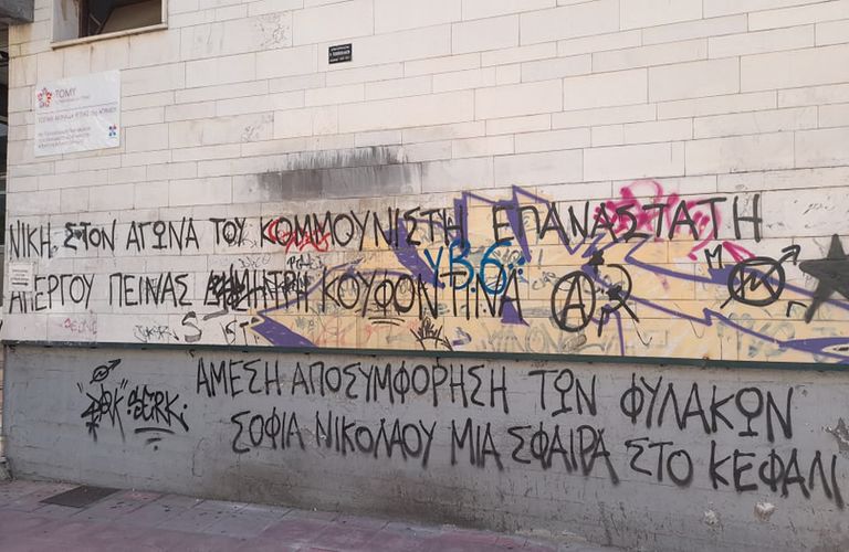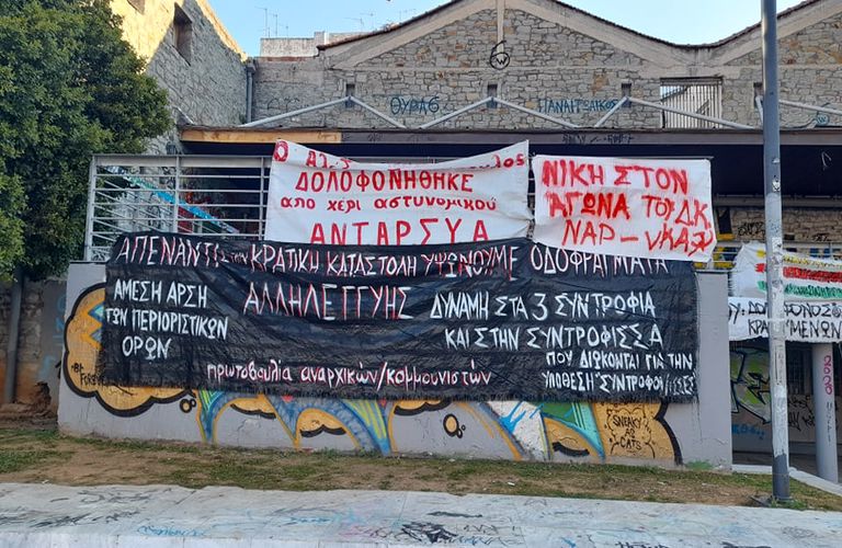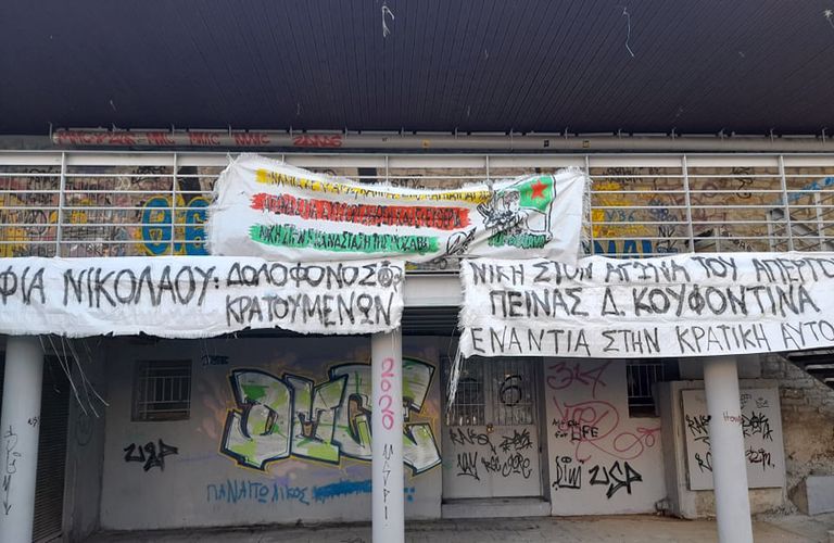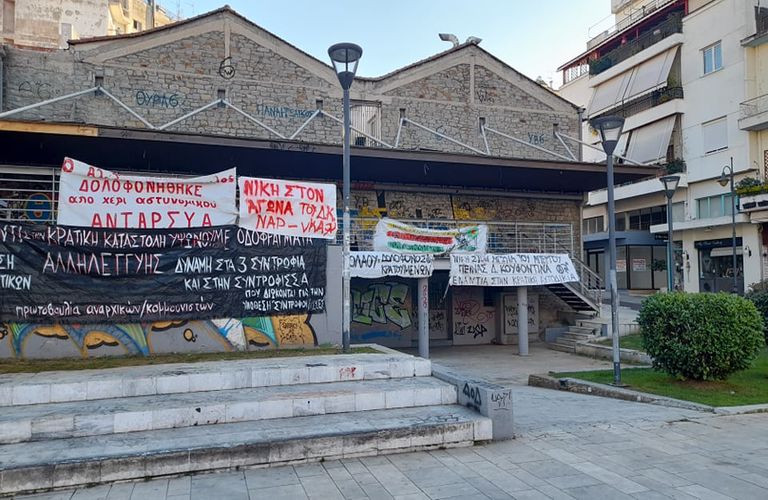 Πάνω στη Πλατεία ομάδες νεαρών που συνολικά ξεπερνούσαν τα 60 άτομα, με δυνατή μουσική που ακούγονταν από τα ηχεία με επαναστατικά τραγούδια και πολλά πανό συμπαράστασης στον απεργό πείνας Δημήτρη Κουφοντίνα.
