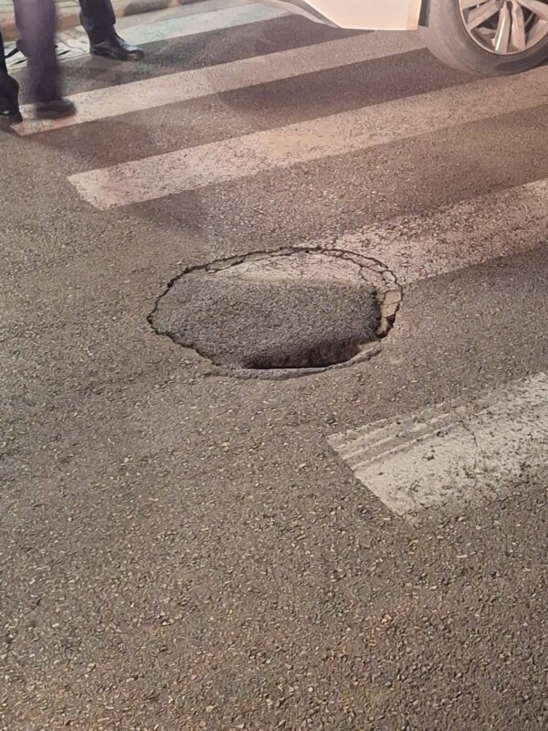 Στο σημείο έχει ανοίξει εμφανής τρύπα στο οδόστρωμα, με αποτέλεσμα οι οδηγοί να κινούνται με ιδιαίτερη προσοχή.