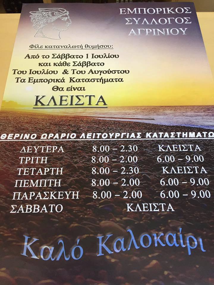 για την απόφαση του Εμπορικού συλλόγου με την οποία θα παραμένουν κλειστά κι αυτό το καλοκαίρι τα καταστήματα, τα Σάββατα, από τη 1 Ιουλίου έως την 31 Αυγούστου.