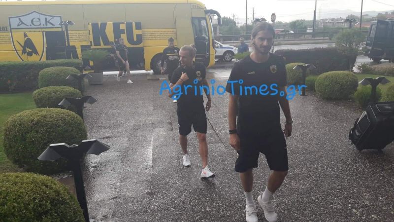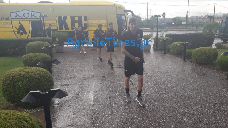 Λίγα λεπτά μετά τις 17:00 η αποστολή της Α.Ε.Κ. έφτασε στο Αγρίνιο για τον αυριανό κρίσιμο αγώνα με τον Παναιτωλικό, στο πλαίσιο της 4ης αγωνιστικής του πρωταθλήματος της Super League 1.