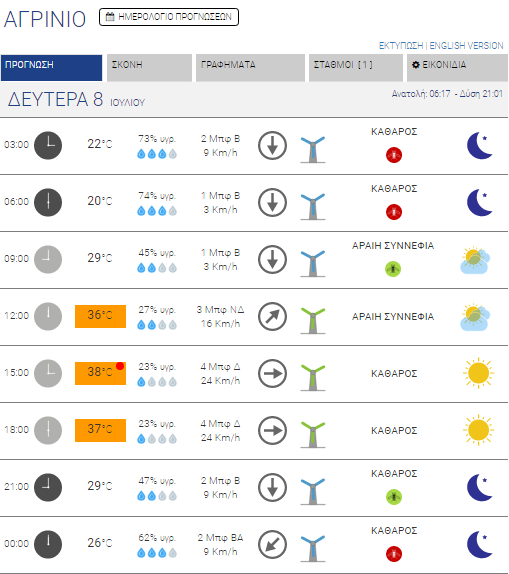 Αγρίνιο: Αραιή συννεφιά το πρωί – Έως τους 38 βαθμούς η θερμοκρασία