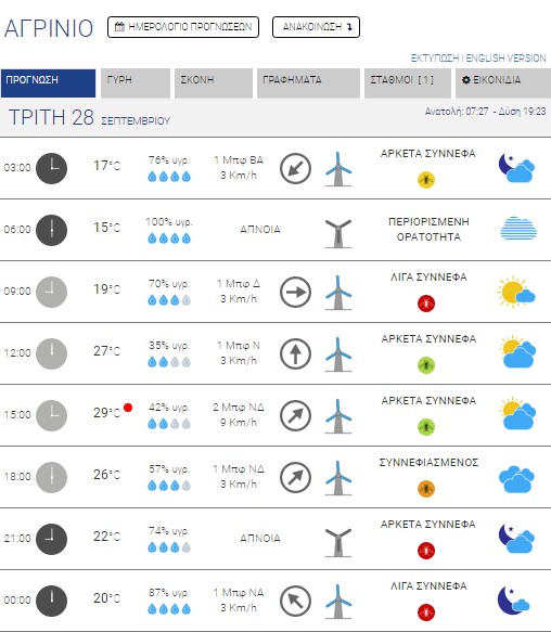 Τοπικές βροχές και σποραδικές καταιγίδες αναμένονται την Τρίτη 28 Σεπτεμβρίου 2021. Άνεμοι έως 7 μποφόρ στο Νοτιοανατολικό Αιγαίο. Μικρή πτώση της θερμοκρασίας.