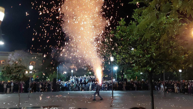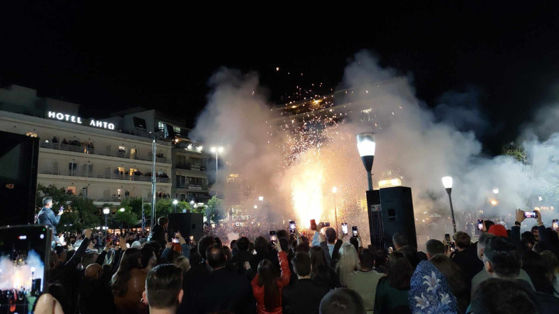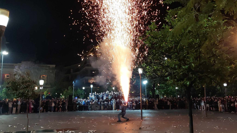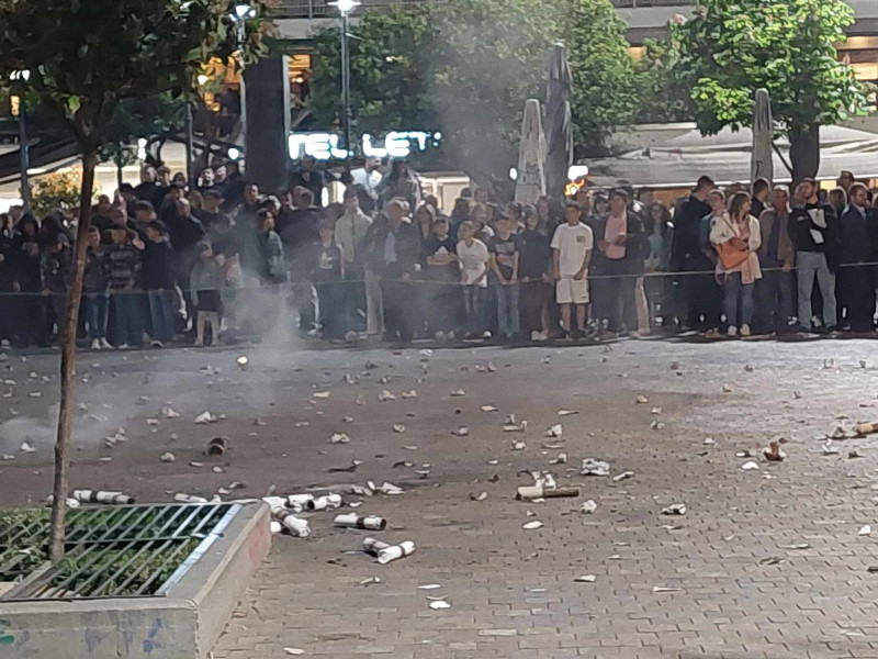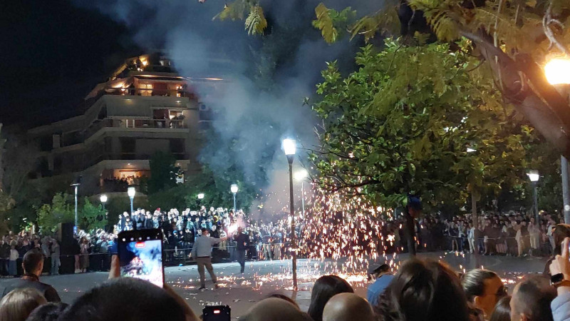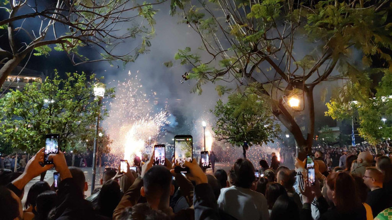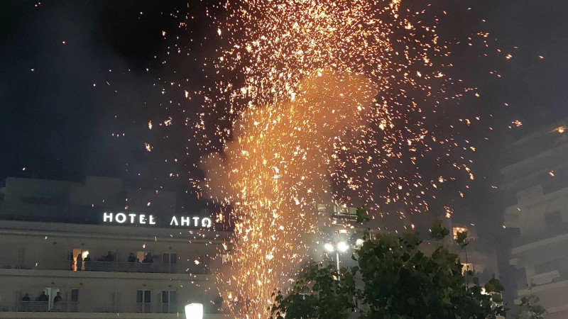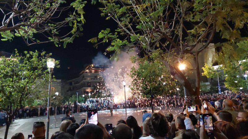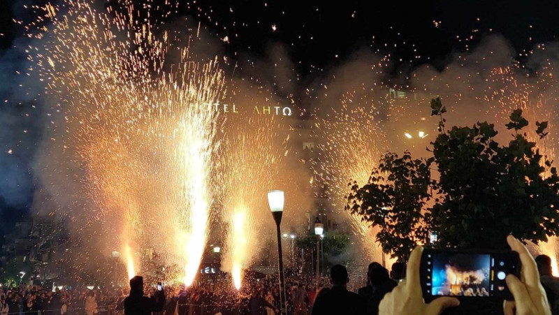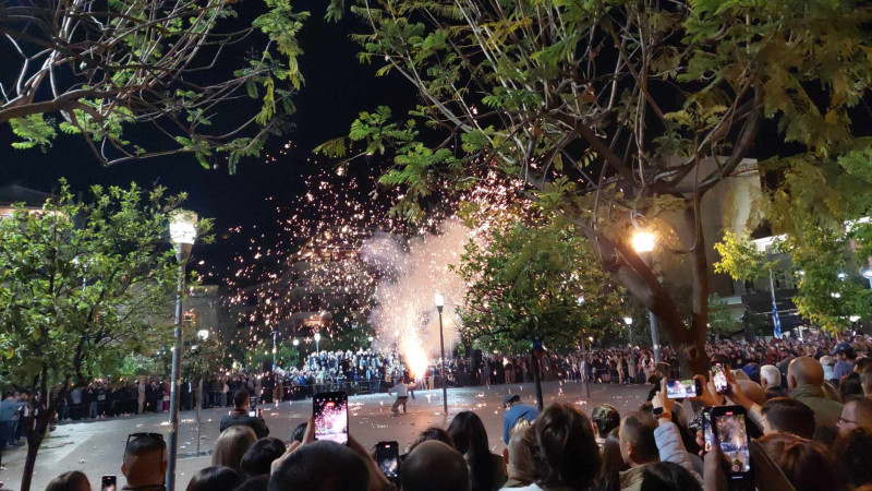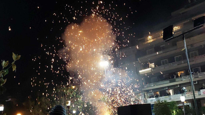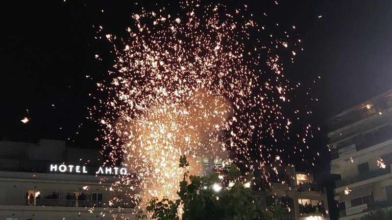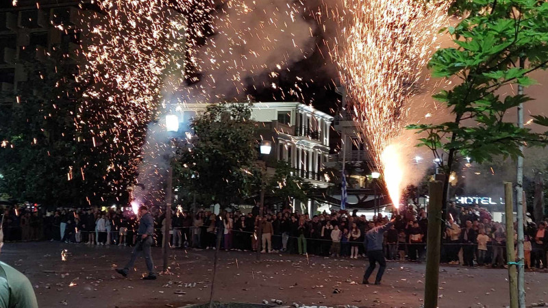 - Το κέντρο της πόλης σείεται από τους κρότους και φωτίζεται από το πορτοκαλί φως των φλόγων