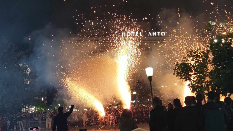 Πλήθος κόσμου, ντόπιοι και επισκέπτες, συγκεντρώθηκαν στην Κεντρική Πλατεία για να παρακολουθήσουν τους χαλκουνάδες να ανάβουν δεκάδες χαλκούνια, φωτίζοντας τον ουρανό και δημιουργώντας μια φαντασμαγορική ατμόσφαιρα.